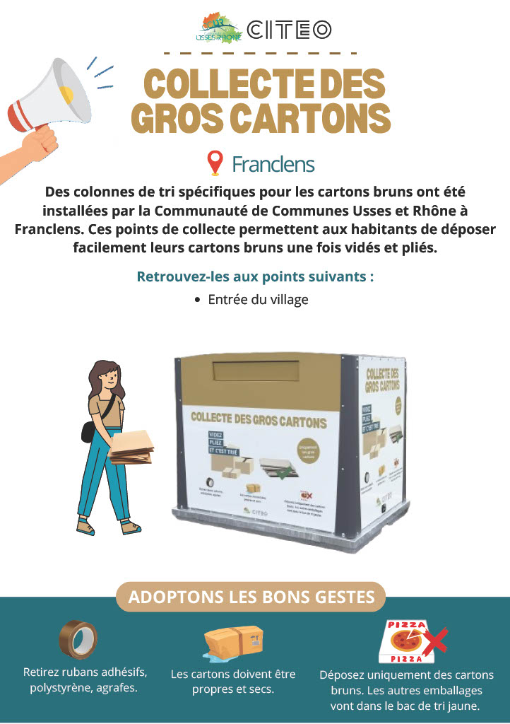 Vous pouvez y déposer tout vos cartons mais pas les cartonnettes qui devront continuer à être jeté avec les papiers dans les container de tri sélectif.
